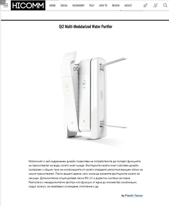 【報導】感謝HiComm Magazine報導 QI2 Multi-Modularized Water Purifier