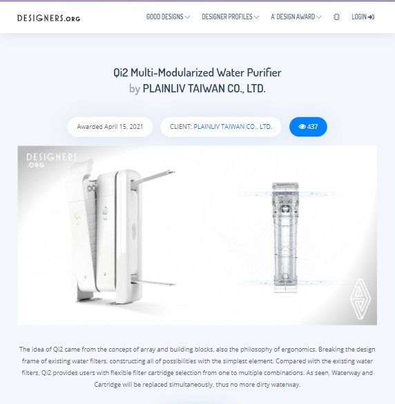 【報導】感謝Desiners.org展示QI2 Multi-Modularized Water Purifier為the very best design work